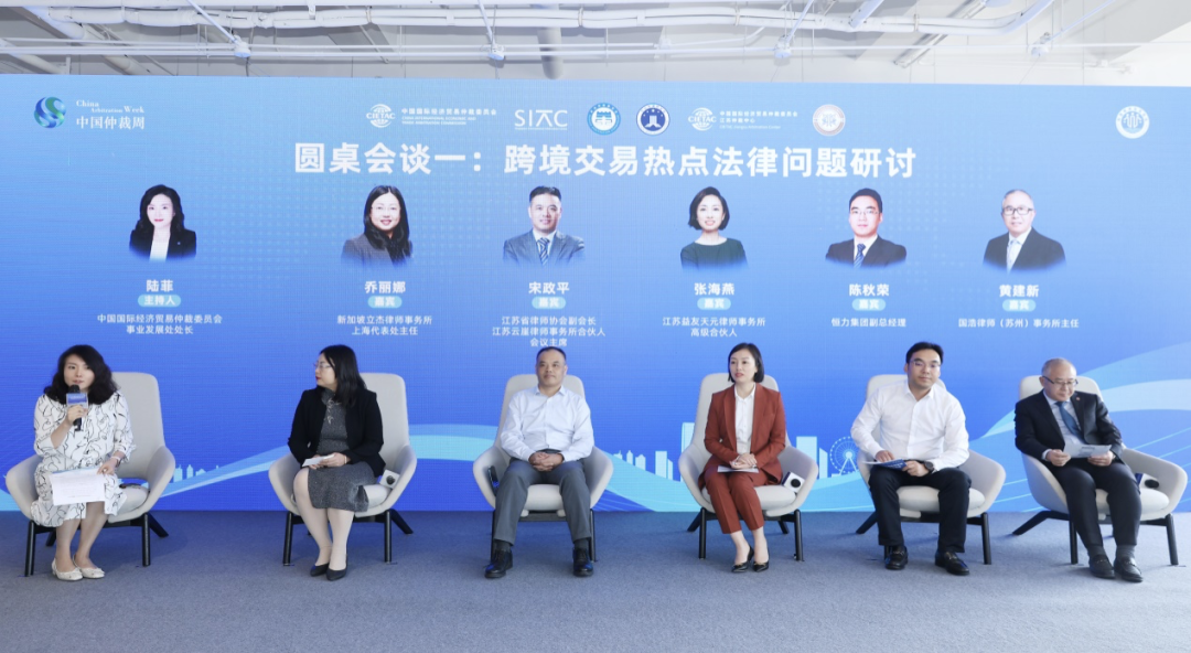 第一个议题“跨境交易的热点法律问题”由贸仲事业发展处处长陆菲主持。新加坡立杰律师事务所上海代表处主任乔丽娜,贸仲仲裁员、江苏省律师协会副会长、江苏云崖律师事务所合伙人会议主席宋政平,江苏益友天元律师事务所高级合伙人张海燕,恒力集团副总经理陈秋荣,国浩律师(苏州)事务所主任黄建新分别发言。各位嘉宾围绕跨境交易常见问题和风险,跨境风险的整体识别和救济渠道,跨境交易合同争议解决条款的谈判和订立,跨境交易中国际支付和结算,跨境电商的发展和信息技术在争议解决领域的运用进行了分享和交流。