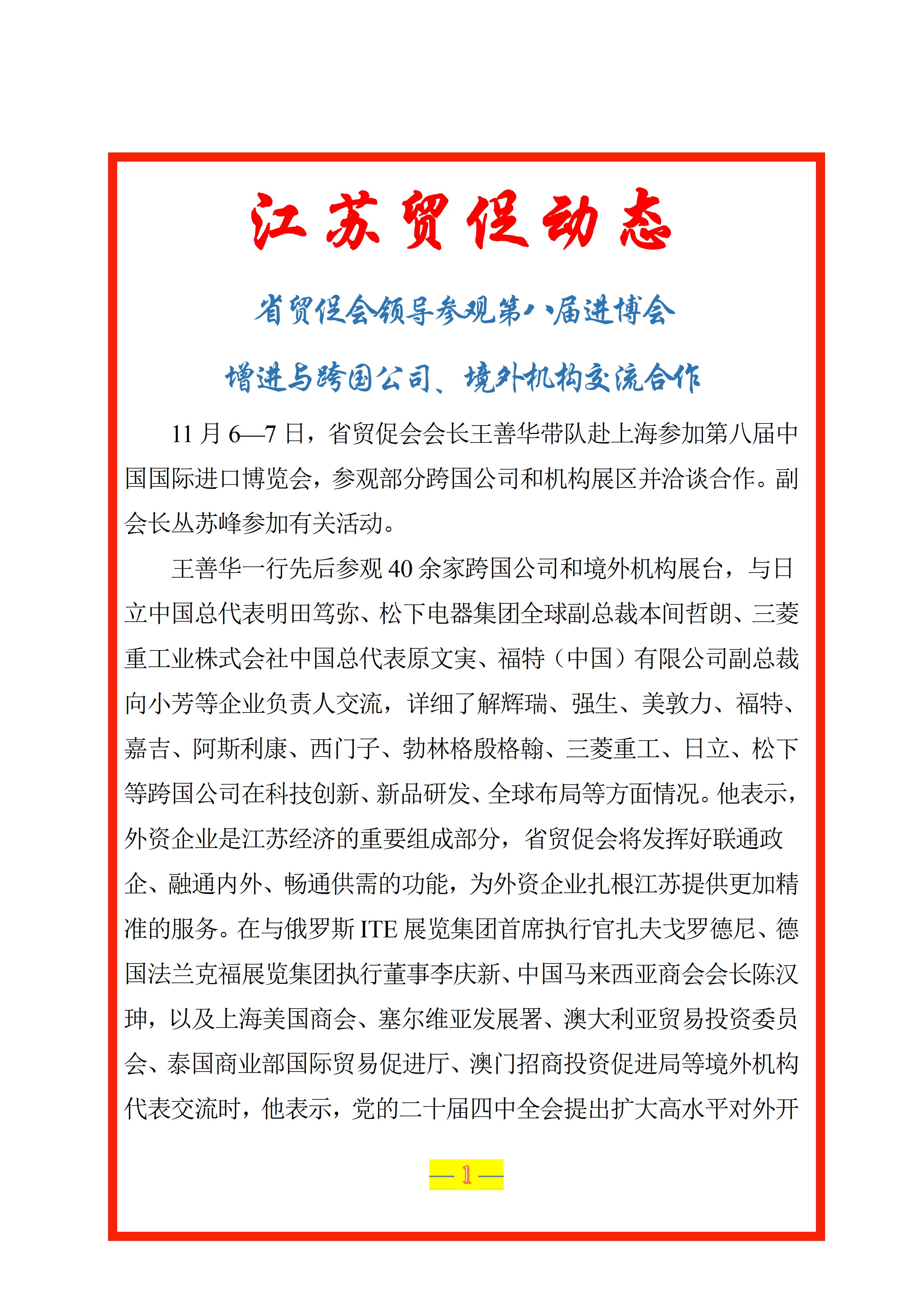 省贸促会领导参观第八届进博会 增进与跨国公司、境外机构交流合作