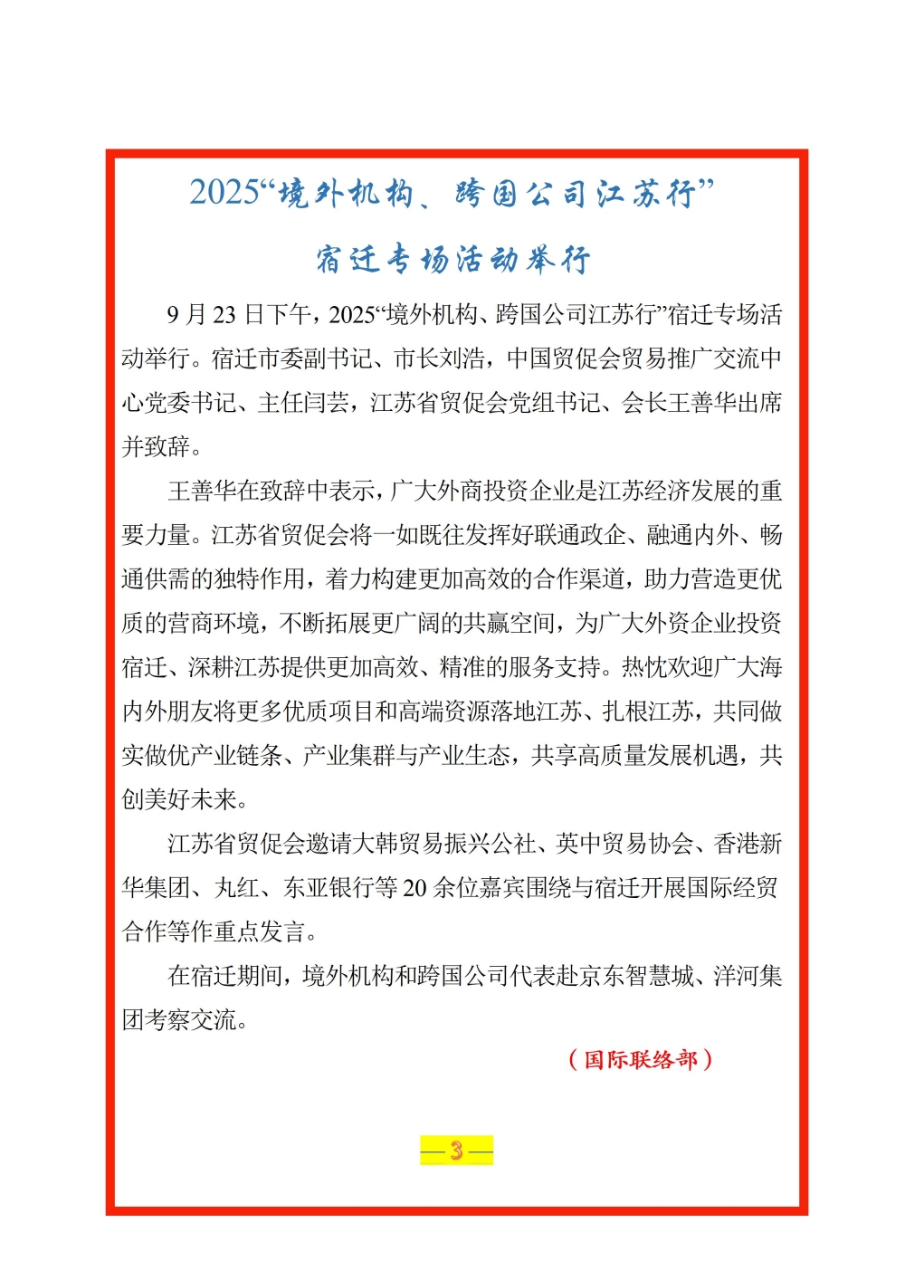 2025“境外机构、跨国公司江苏行”宿迁专场活动举行