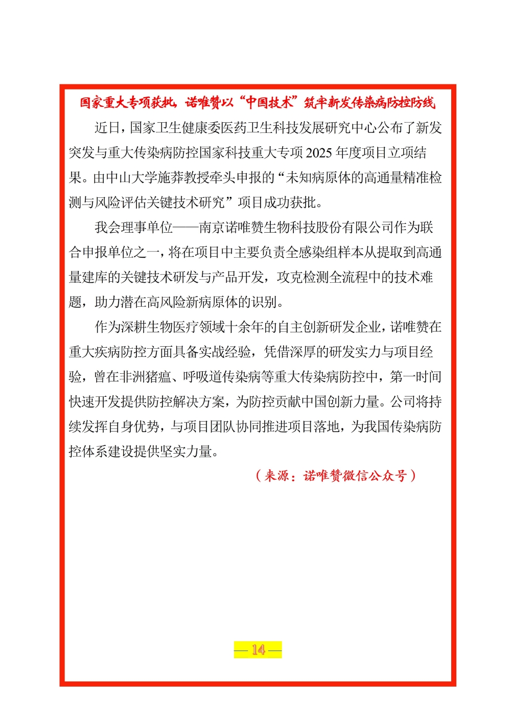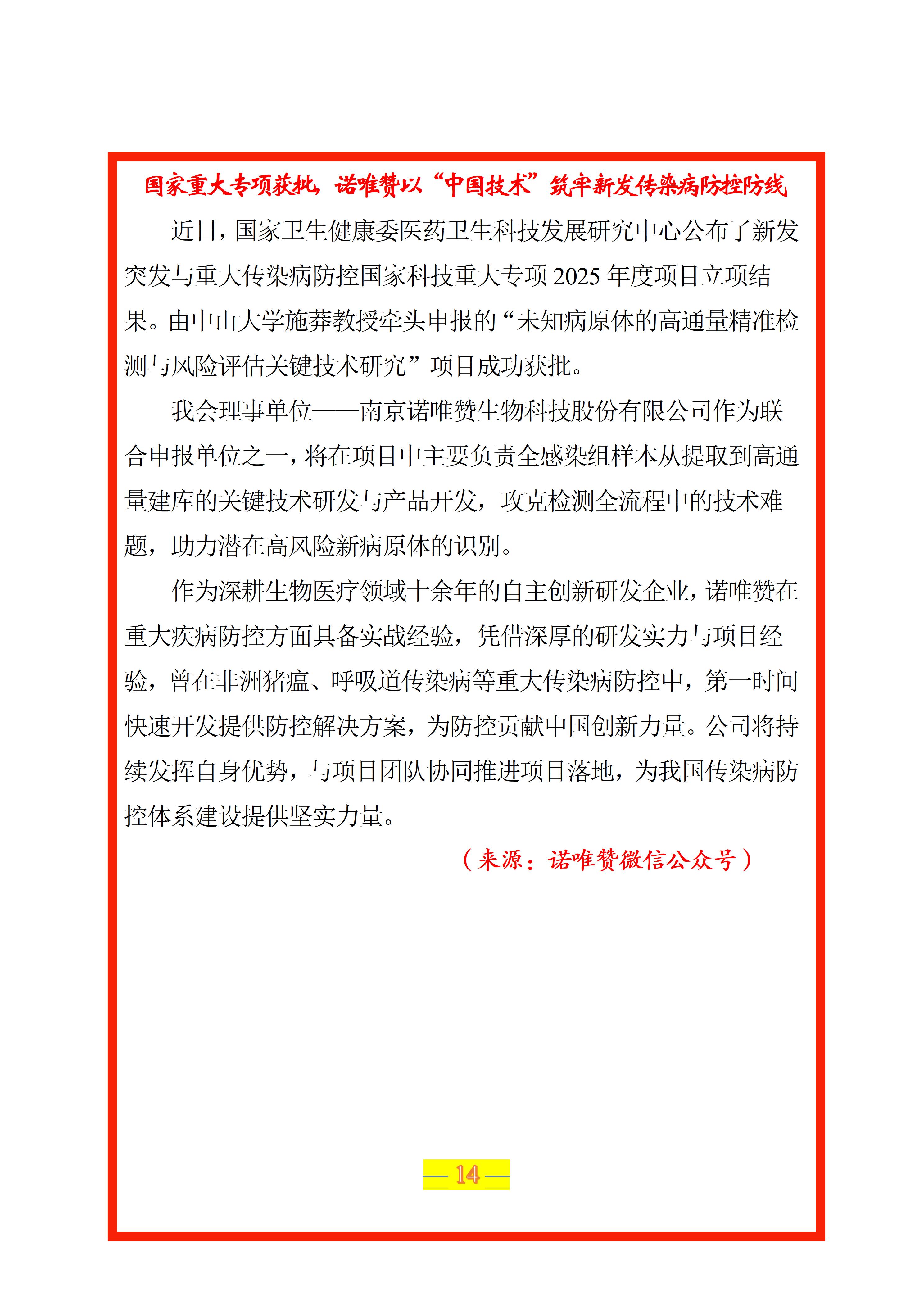 国家重大专项获批,诺唯赞以“中国技术”筑牢新发传染病防控防线