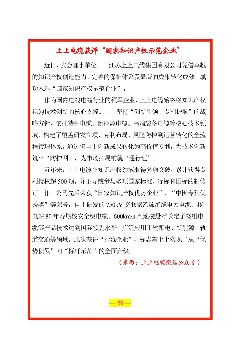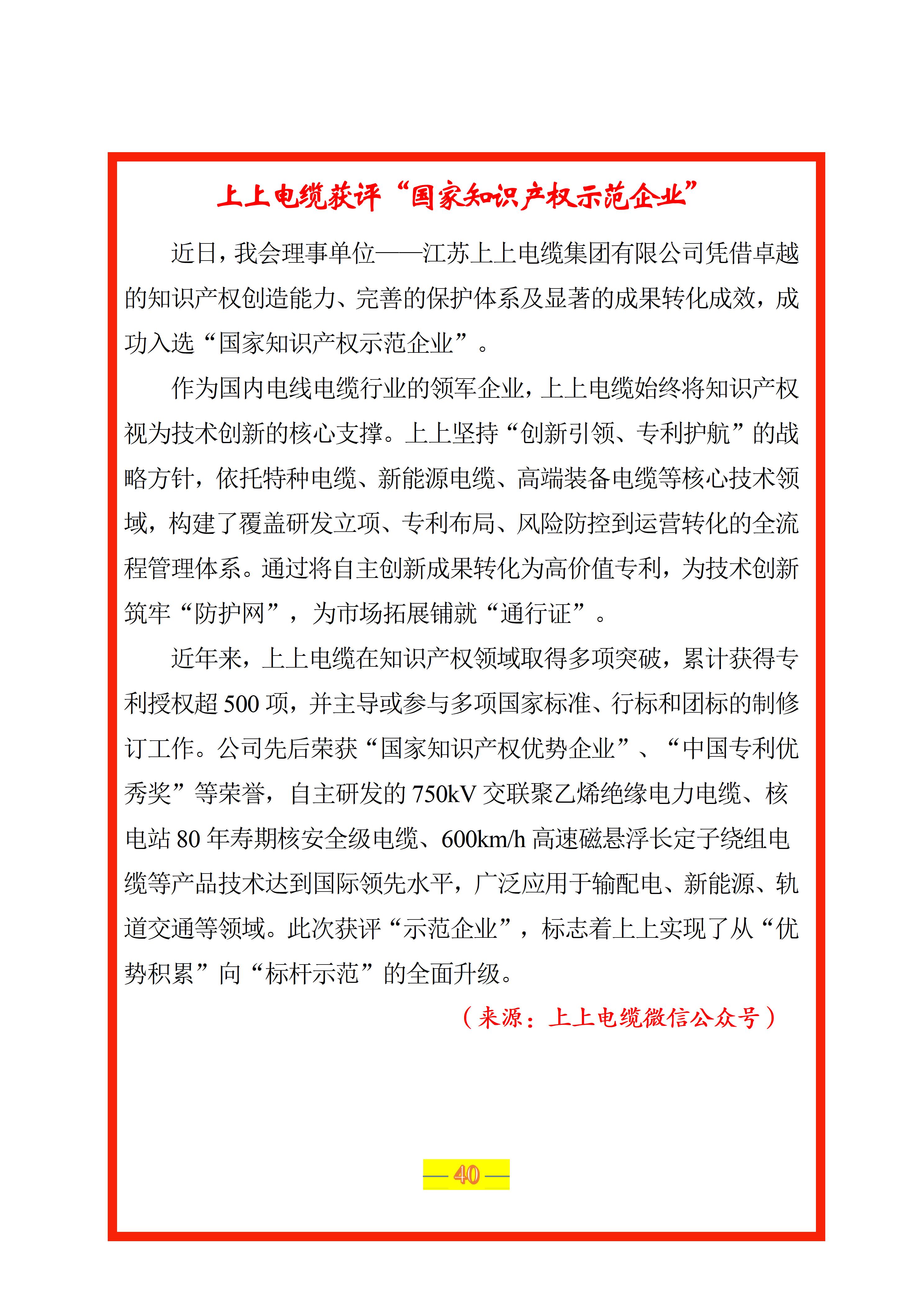 上上电缆获评“国家知识产权示范企业”