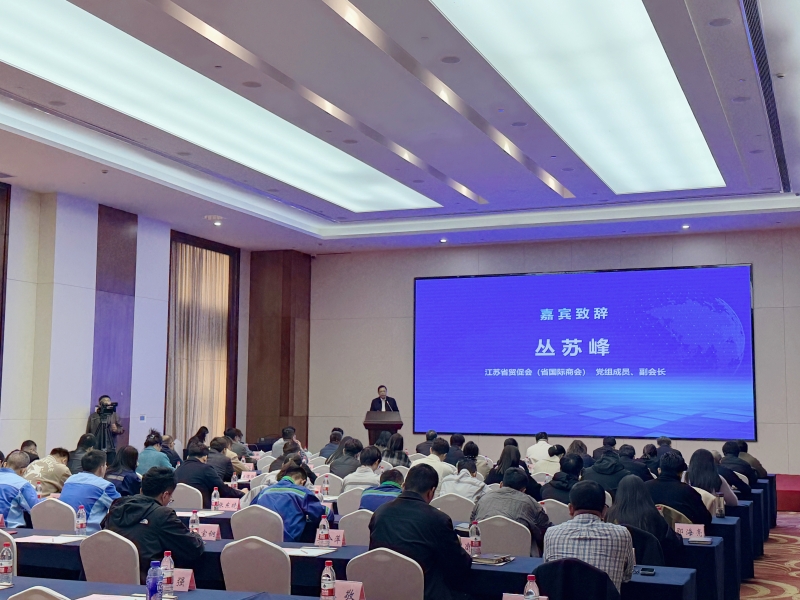丛苏峰在致辞中表示,省贸促会(国际商会)是企业“走出去”的桥梁和平台,致力于推动会员企业在绿色低碳领域的国际合作与交流。未来将充分发挥国际化、专业化、特色化优势,搭建更多交流对接平台,强化政策解读和培训服务,助力企业破解碳足迹认证、国际互认等痛点难点,为江苏绿色贸易高质量发展注入更多动能,进一步助力江苏打造具有世界聚合力的双向开放枢纽。