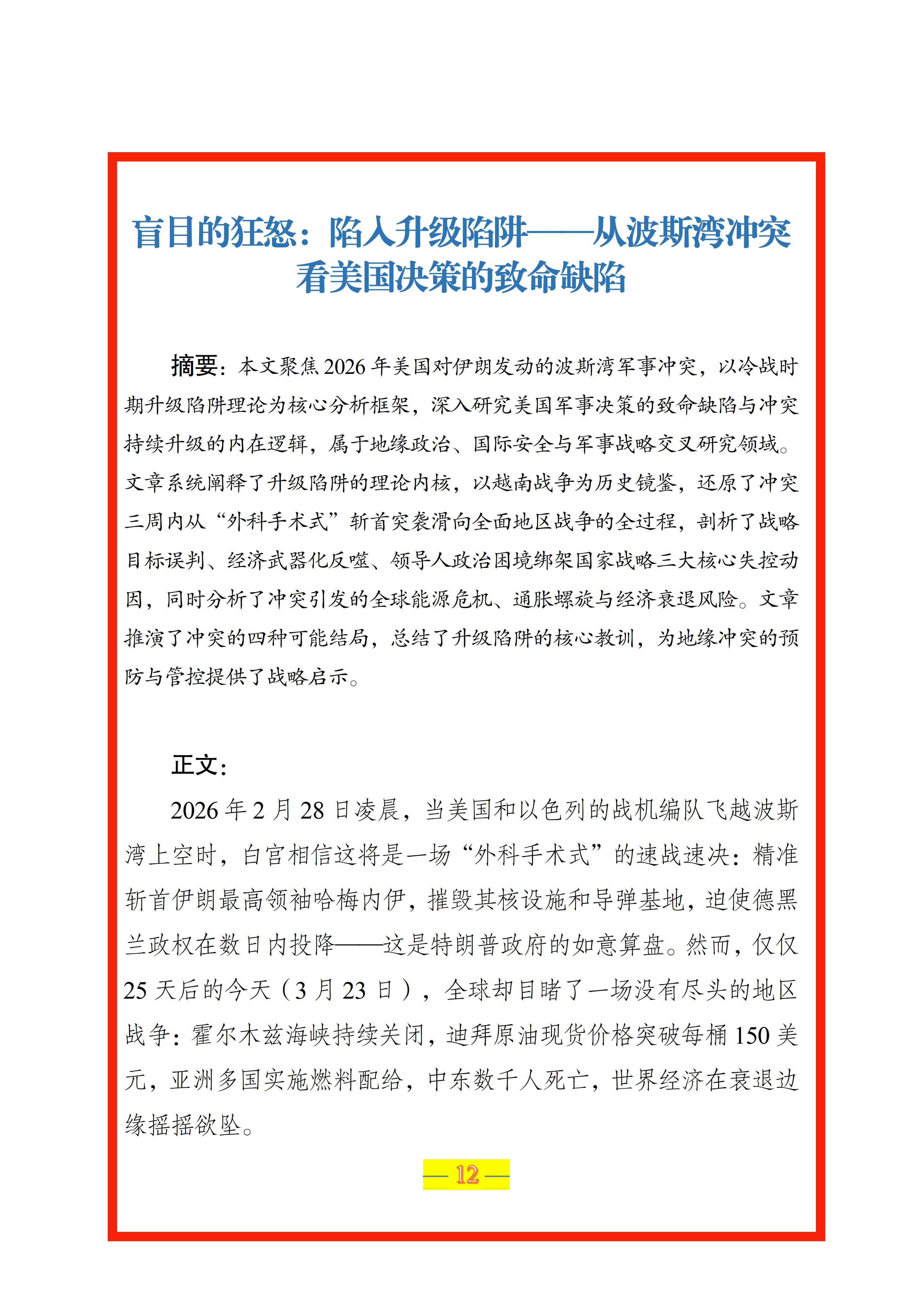 盲目的狂怒:陷入升级陷阱——从波斯湾冲突看美国决策的致命缺陷